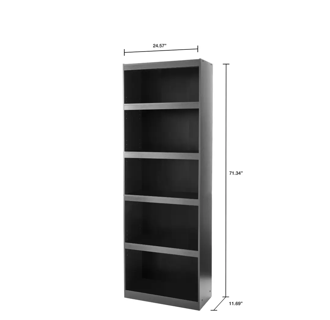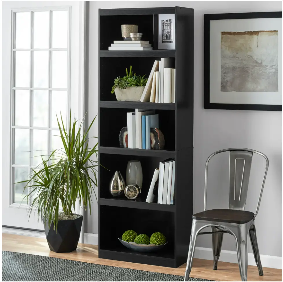 The functional Framed 5-Shelf Bookcase adds a sleek and stylish look to any room. This sturdy storage unit features a closed-back design with two fixed shelves that hold up to 50 pounds each and three adjustable shelves that can support up to 35 pounds each. Easily and quickly assembled, this attractive bookshelf can provide a useful storage option for any office, living room, family room, den, or almost anywhere else smart, efficient storage space is needed. It stands over 71 inches tall, can secure to walls with the included wall safety attachment kit, and can accommodate everything from trade paperbacks to large folios to deliver a functional bookcase ideal for all manner of libraries and collections. With its sleek true black oak finish, this charming storage unit can be used for beautifully displaying photography, artwork, collectibles, or for just keeping much needed items at hand. Function and style are brought to your home with the 5-Shelf Bookcase. furniture offers an ideal solution for anyone who wants stylish, versatile home and office furnishings. With a variety of different furniture collections reflecting clean, modern style and simple forms that can fit in with nearly any style of decor, furniture offers something for everyone. Look out for bedroom, lounge, office and storage furniture pieces in this category, including some items that require no tools for assembly.
