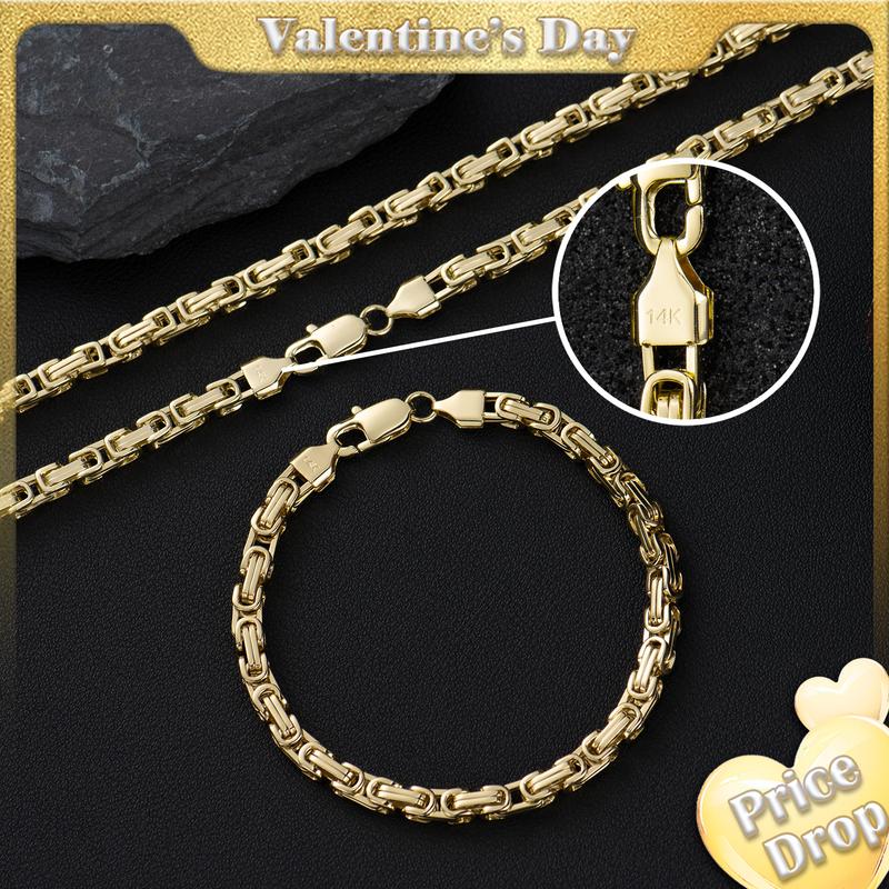 Description says...and bracelet set did not get the bracelet not to happy about that..quality and color looks ok A little too shiny for real gold if you ask me but its okay just got it in so we will see its longevity