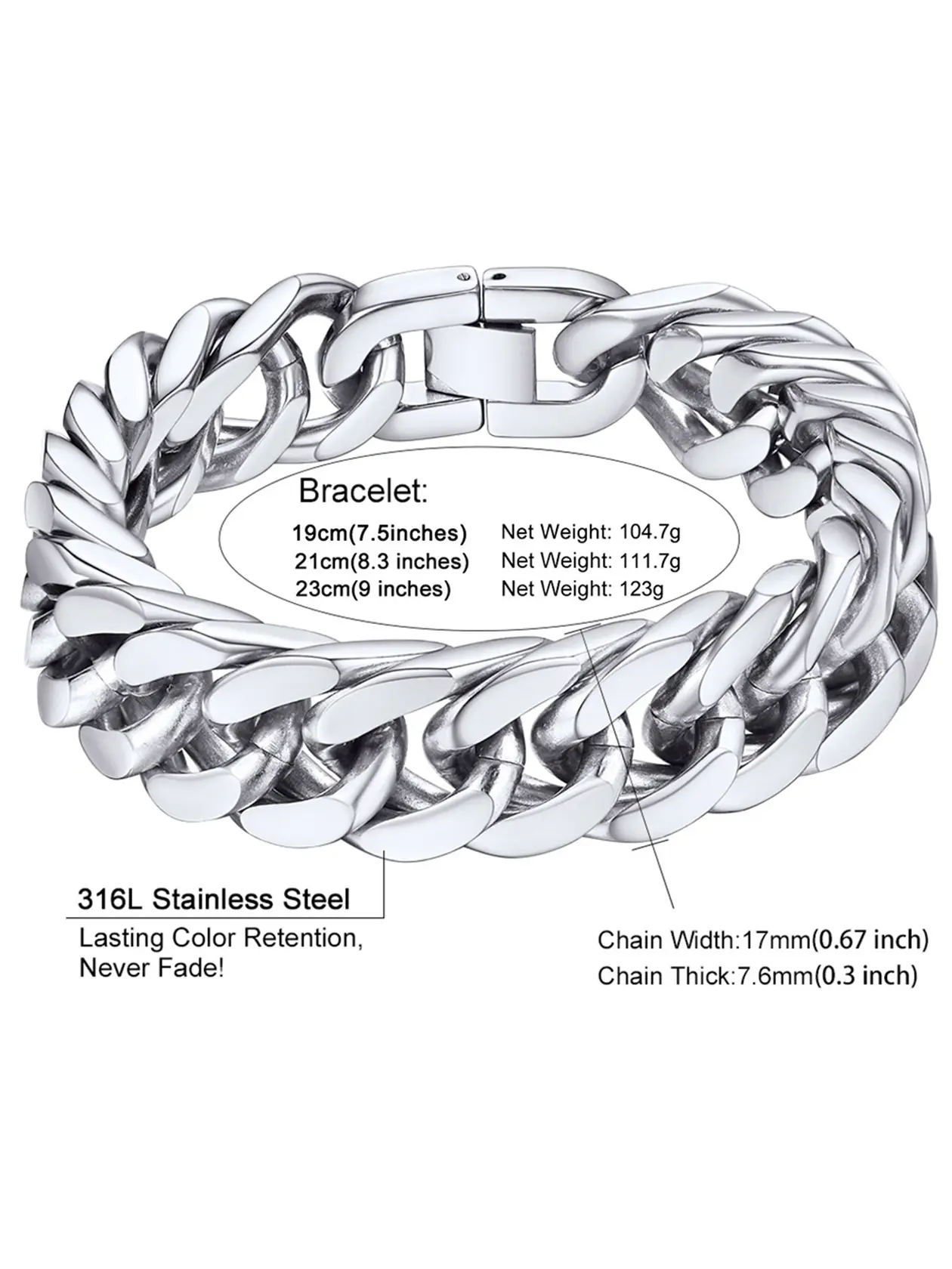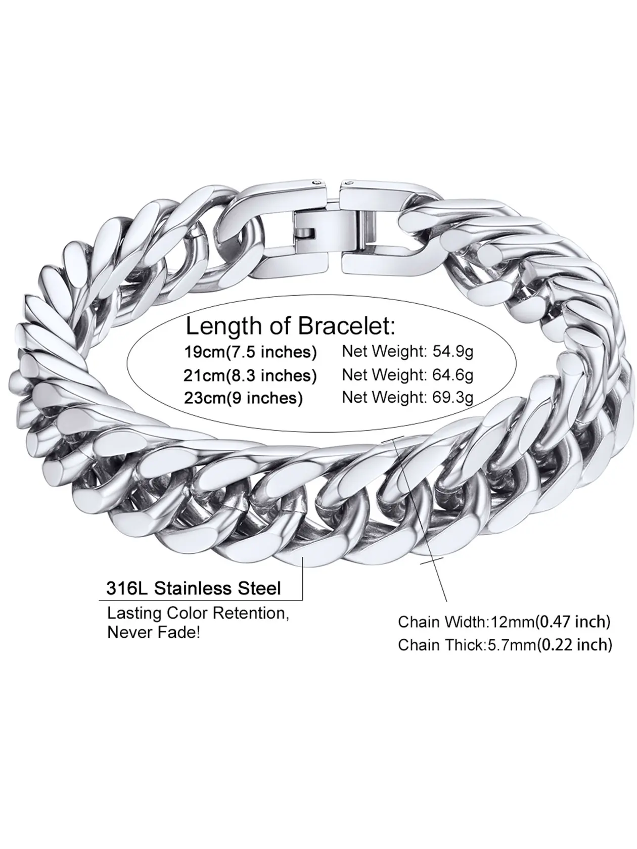 PROSTEEL Franco Chain Link Bracelet Stainless Steel Cuban Chain Bracelet Trendy Chunky 8mm/12mm/17mm Width Bracelets Unisex For Men Women Gift Box