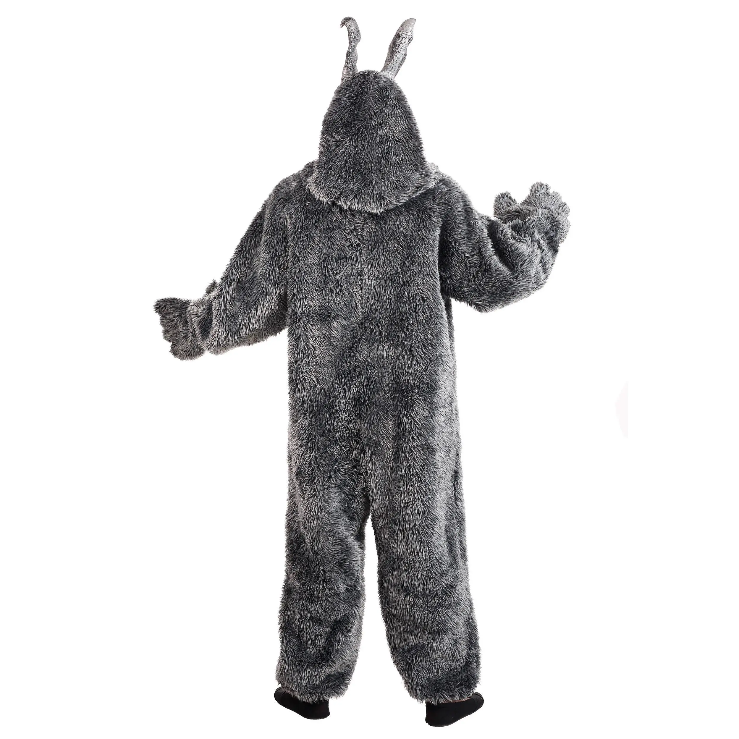 This eerie rabbit costume was designed by our in-house creative team. The suit is made of faux fur and has a thick, shaggy white belly. The sleeves end with clawed gloves with felt claws and make your hands seem oversized. The mask falls over your head with faux fur around your whole head. The silver rabbit face has molten latex facial features and pointy rabbit ears. Holes in the eyes, nose, and mouth let you see and breathe. With an over-sized fit, this costume can easily be layered over fitted clothing to make it a great pick for chilly October nights.