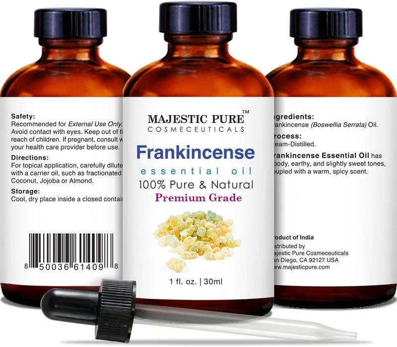 ·100% PURE & NATURAL FRANKINCENSE OIL - Majestic Pure Blends oils are exactly that! Many oils being sold make that claim but are in fact made of natural isolates and mixtures. Each essential oil is tested by an independent lab which is why every bottle comes with a Quality Guaranty.