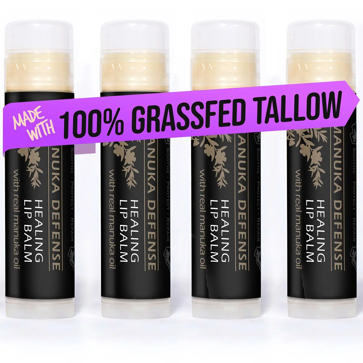 Frankincense & Sweet Myrrh Cream & Manuka Lip Balm 4-Pack Bundle - Nourishing Lip Care with Frankincense Sweet Myrrh & Manuka Honey Oil for Daily Use