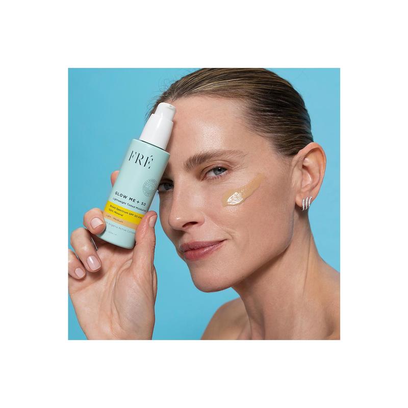 ·GLOW ME+ 50 is a breakthrough lightweight tinted moisturizer that delivers FRÉ's proprietary antioxidant patent (Argania Active Complex™), SPF 50 mineral sunscreen, and adapts to your skin tone for a dewy glow