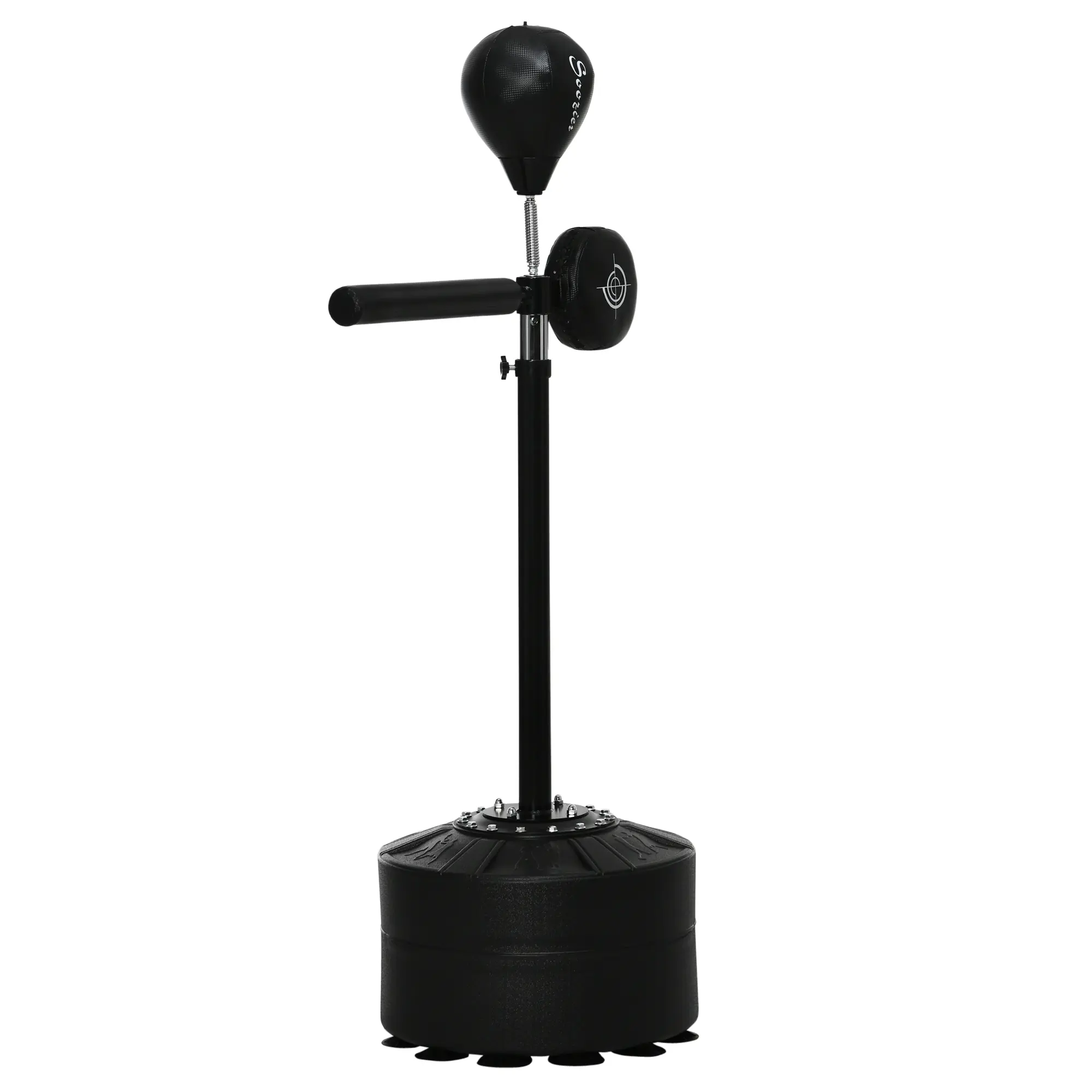 Soozier Free Standing Boxing Bag with Stand, Punching Speed Bag Reaction Bar Challenge with Suction Cups, 64-81in Adjustable Height for Teenagers and Adults, Black