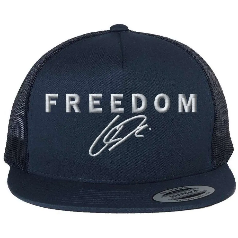 5. Freedom Charlie Kirk Signature Tribute Faith USA Christian Embroidery Flat Bill Trucker Hat