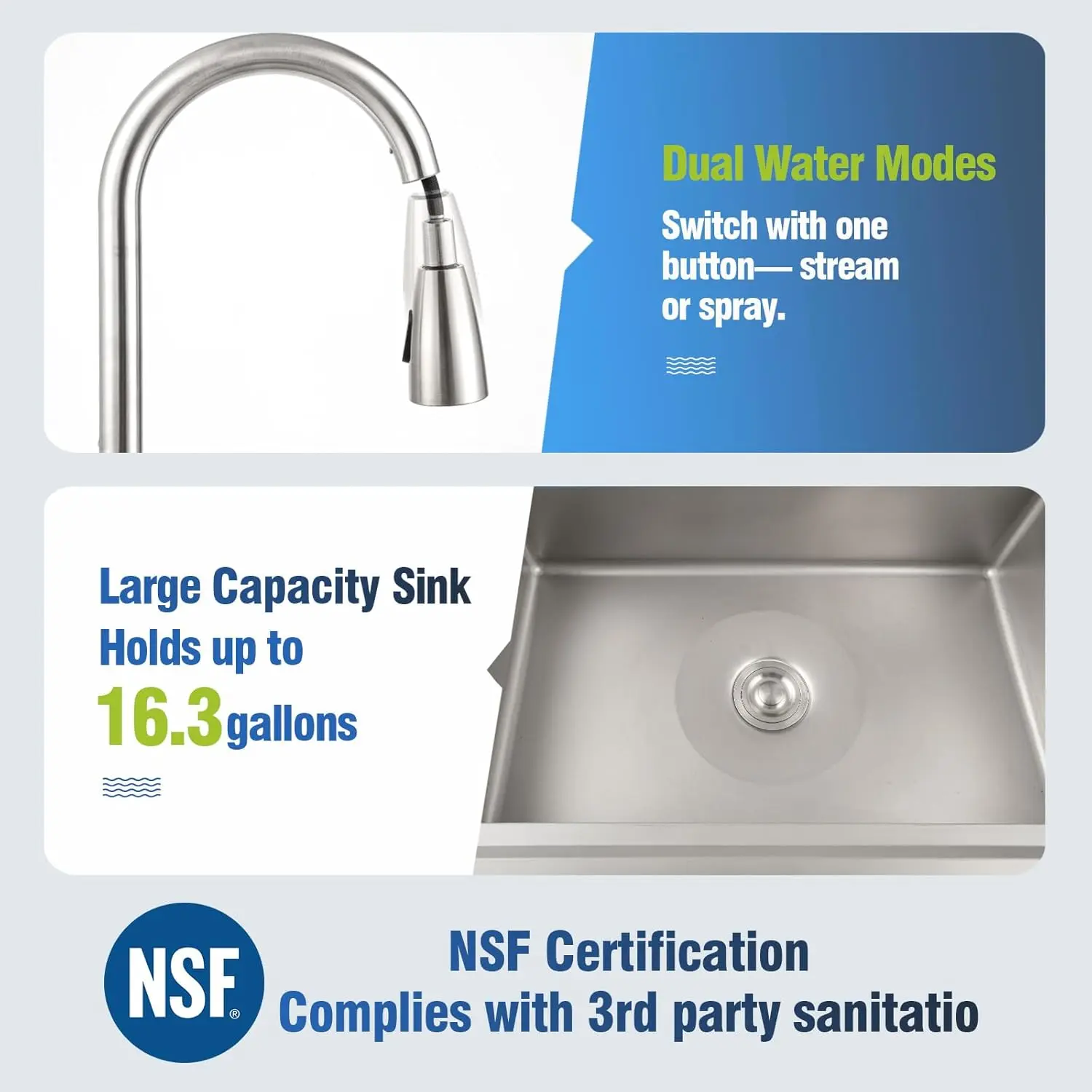 [Versatile for Indoor & Outdoor Use] Perfect for kitchens, laundry rooms, garages, farms, or patios, this utility sink requires no wall mounting and is easy to set up straight out of the box. Built for both residential and commercial use, it’s your all-in-one cleaning station - wherever you need it.