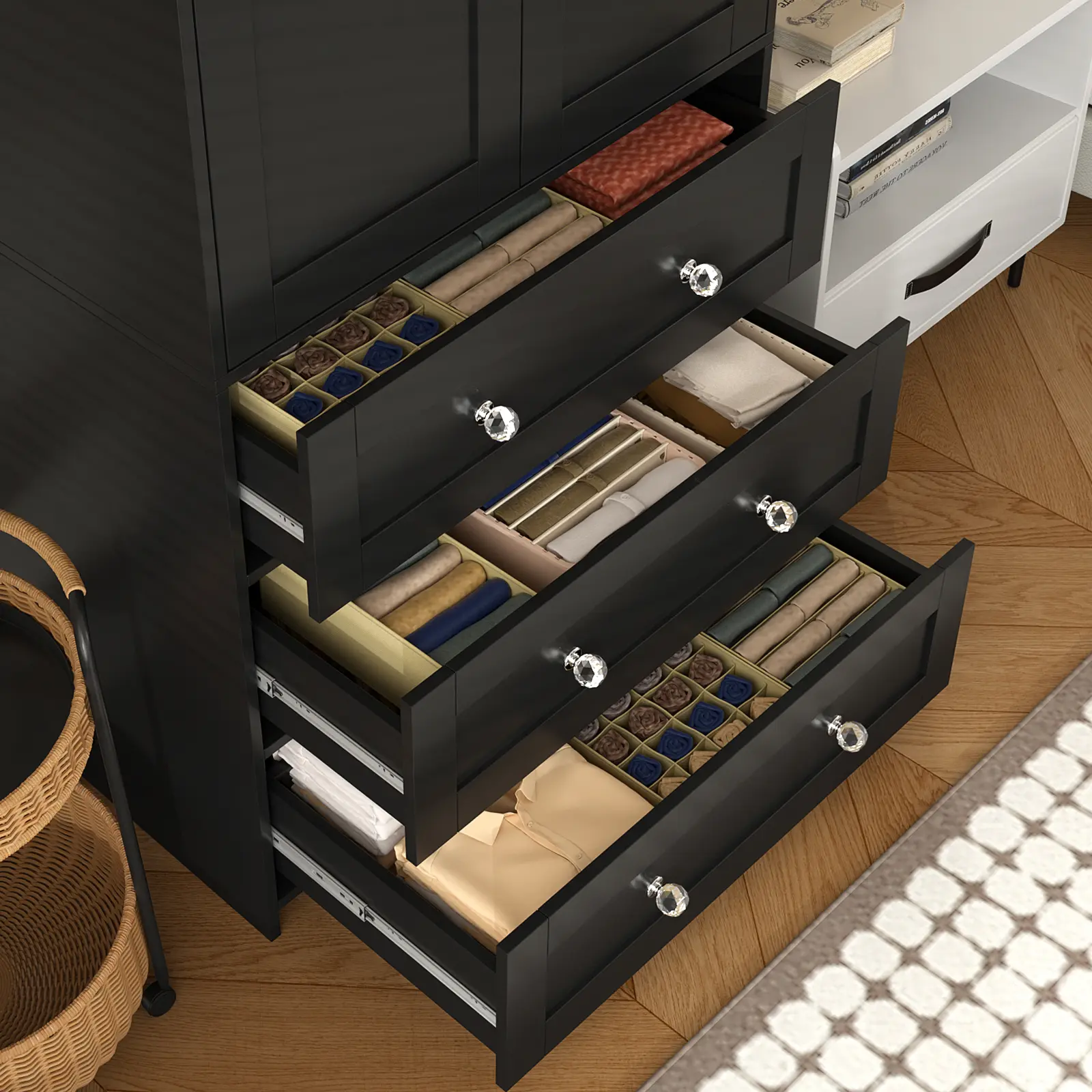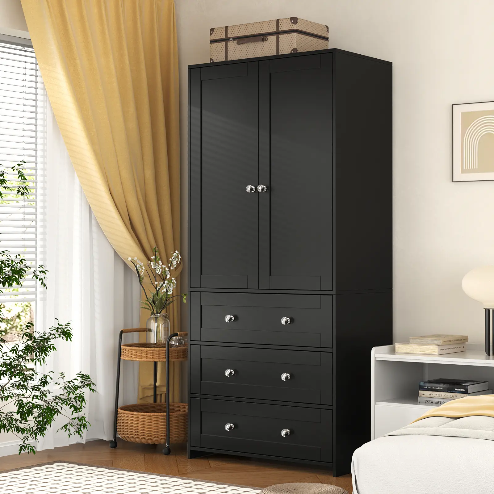【STRONG STORAGE】: This wardrobe has a heel hanging rod and 3 drawers, which provides a wide range of clothing storage and plenty of storage space to meet your different needs. You can easily store clothes, pillows, quilts, handbags and other items.