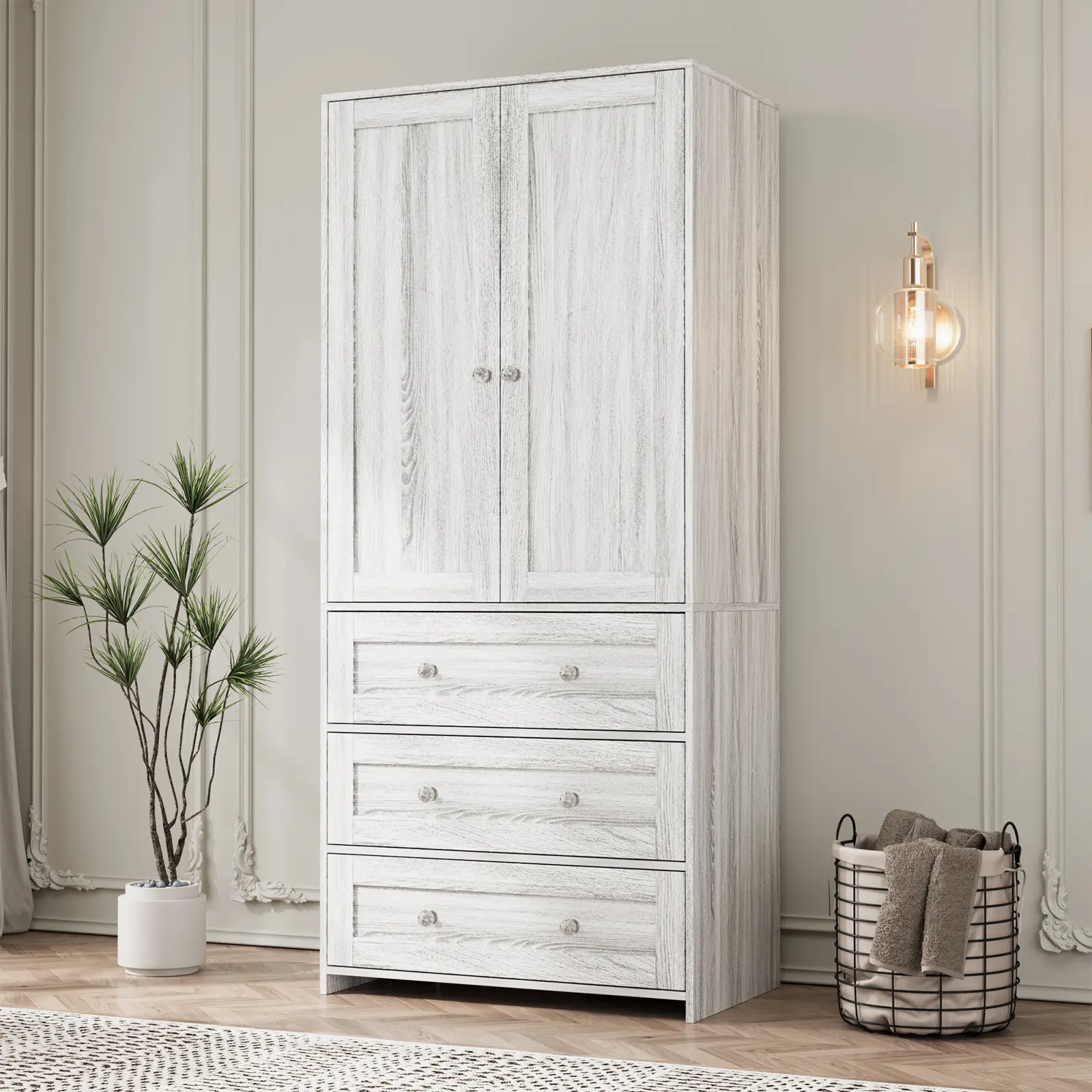 【MODERN AND SIMPLE DESIGN】: This wardrobe features a simple elegant and minimalist look and practical design, perfect for modern small furniture matching, adding sophistication to your bedroom or living room.