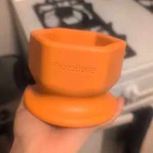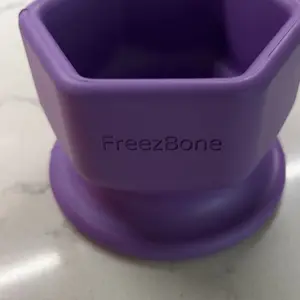The FreezCup features a distinctive, cup-like shape with textured grooves to hold fillers securely. This clever design adds an enriching and interactive element to playtime, ensuring your pet gets a rewarding and enjoyable chewing experience.