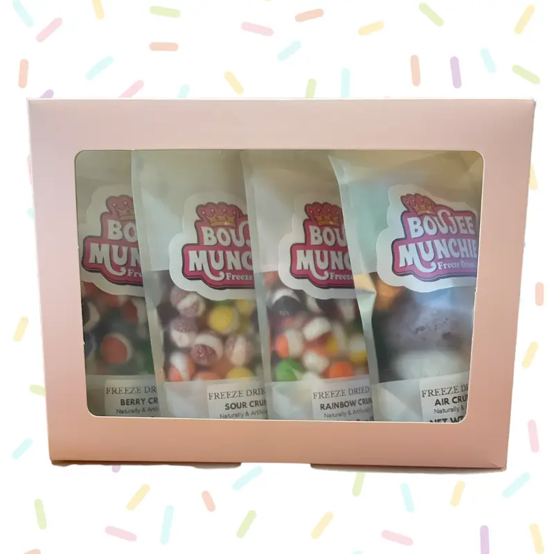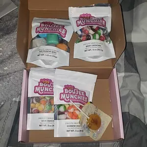 Introducing Boujee Munchies Freeze-Dried Candy Box – a revolutionary snacking experience that takes your taste buds on an exhilarating journey through flavor and texture.