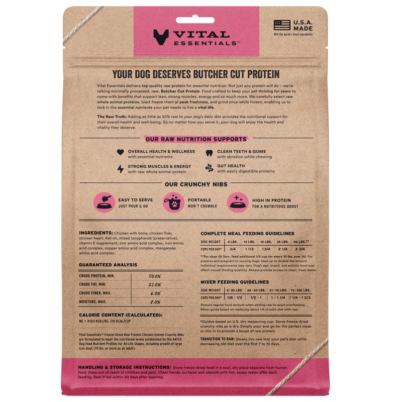 5. Vital Essentials Chicken Crunchy Nibs Meal or Mixer Freeze-Dried Raw Dog Food, 14-oz bag