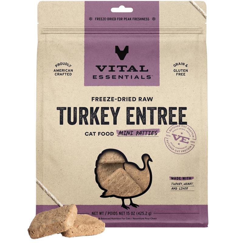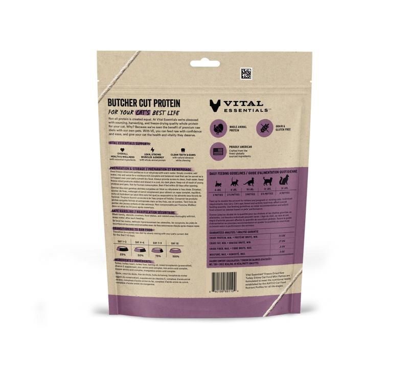 Vital Essentials Freeze Dried Raw Turkey Entrée Cat Food Mini Patties