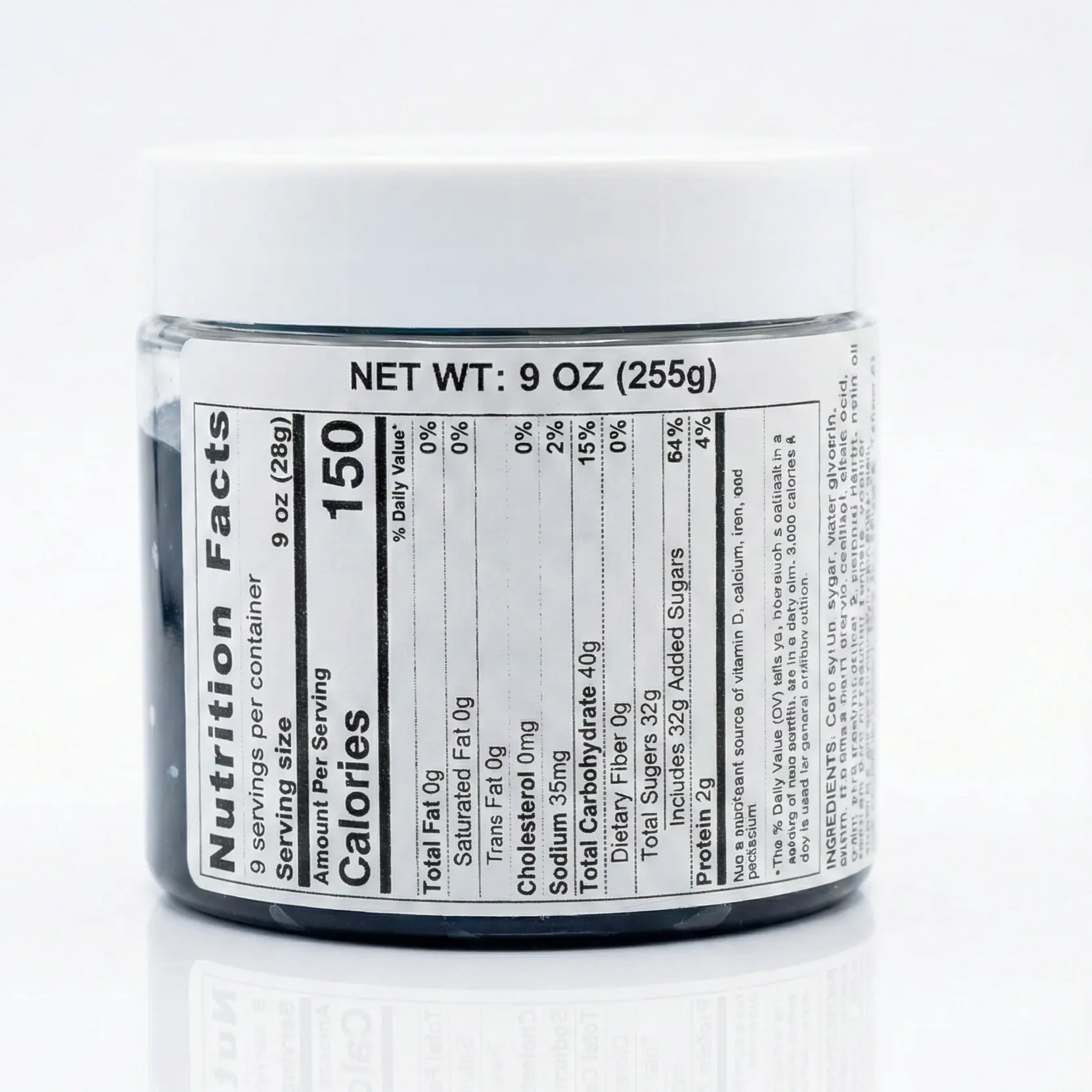 ·Corn syrup · High fructose corn syrup · Glucose syrup · Sugar · Water · Glycerin · Gelatin · Modified corn starch · Sorbitol · Citric acid · Malic acid · Tartaric acid · Lactic acid · Pectin · Natural & artificial flavor · Palm oil · Carrageenan gum · Xanthan gum · Sodium malates · Potassium sorbate · Sodium benzoate · Carnauba wax · Colorings (Blue 1, Red 40, Yellow 5, Yellow 6)