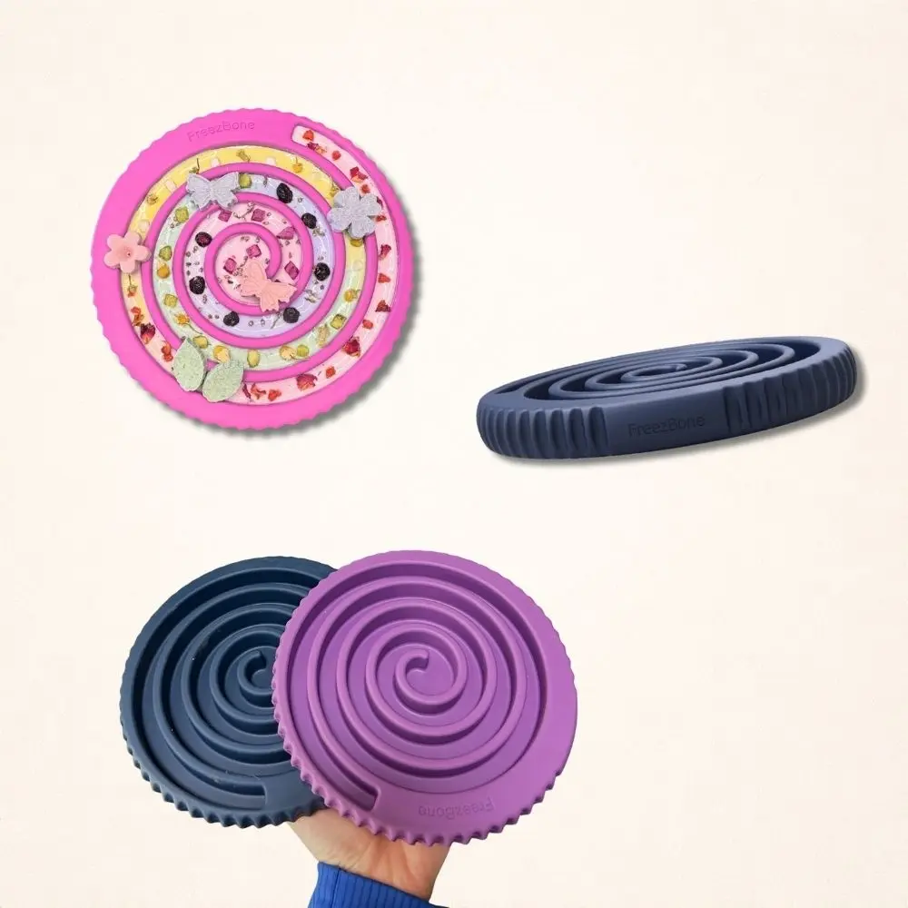 Innovative Design: The FreezSwirl Mat features a distinctive, dynamic design that not only looks impressive but also enhances your dog’s chewing experience. The swirl shape is designed to hold fillers, making playtime more enriching and enjoyable for your pet.