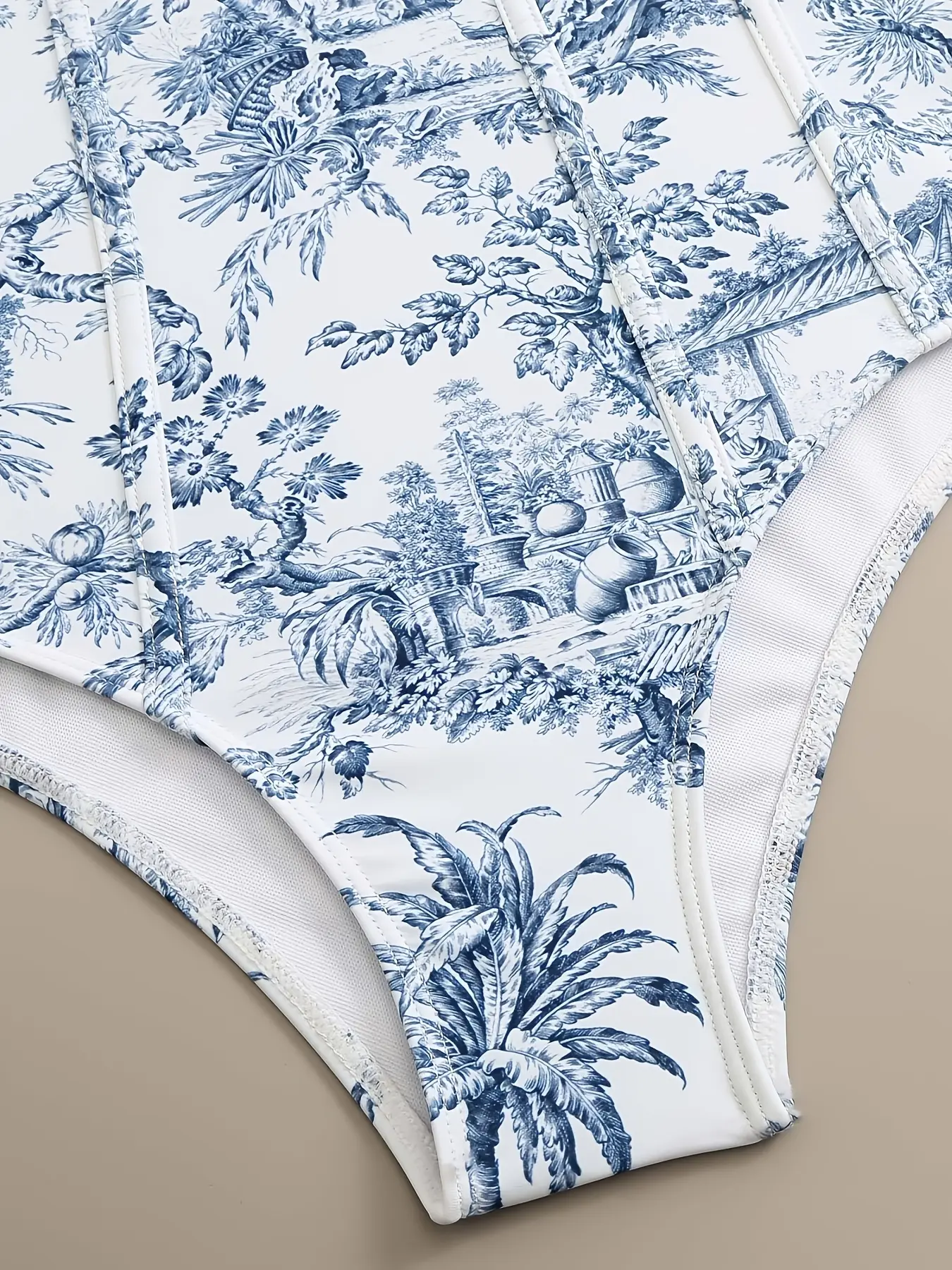 Elevate your beach style with this French Blue & White Toile 2-Piece Swim Set. The waist-cinching design offers tummy control, ensuring a flattering fit. The tie sarong adds a touch of elegance to your vacation essentials. Perfect for beach outings, this swim set is a must-have for your next getaway.