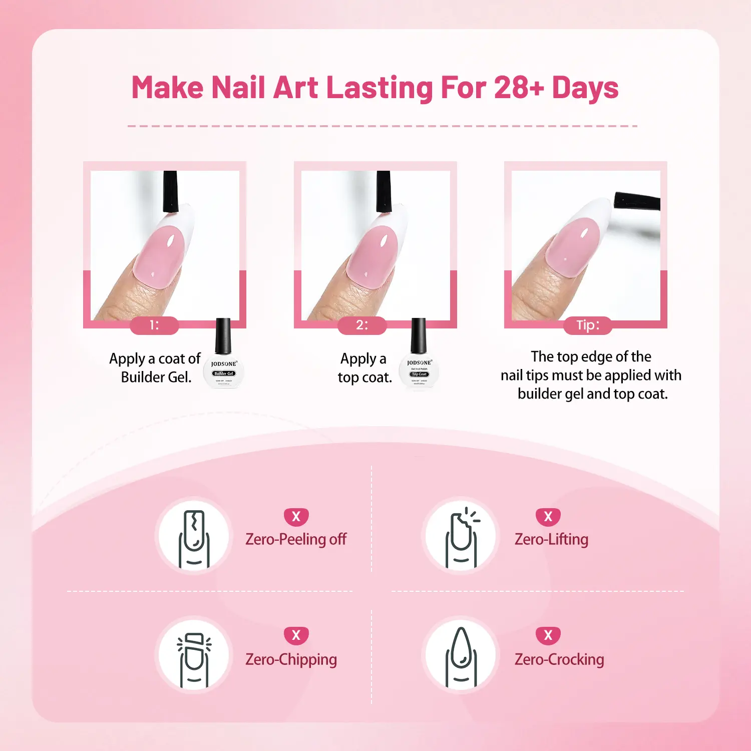 If I could give 0 stars I would. I applied them Friday and the builder gel just melts the nails so after two sets being messed up I finally just pit them on with the top coat to make them decent by Saturday the color was chipping and fading. Highly disappointed.
