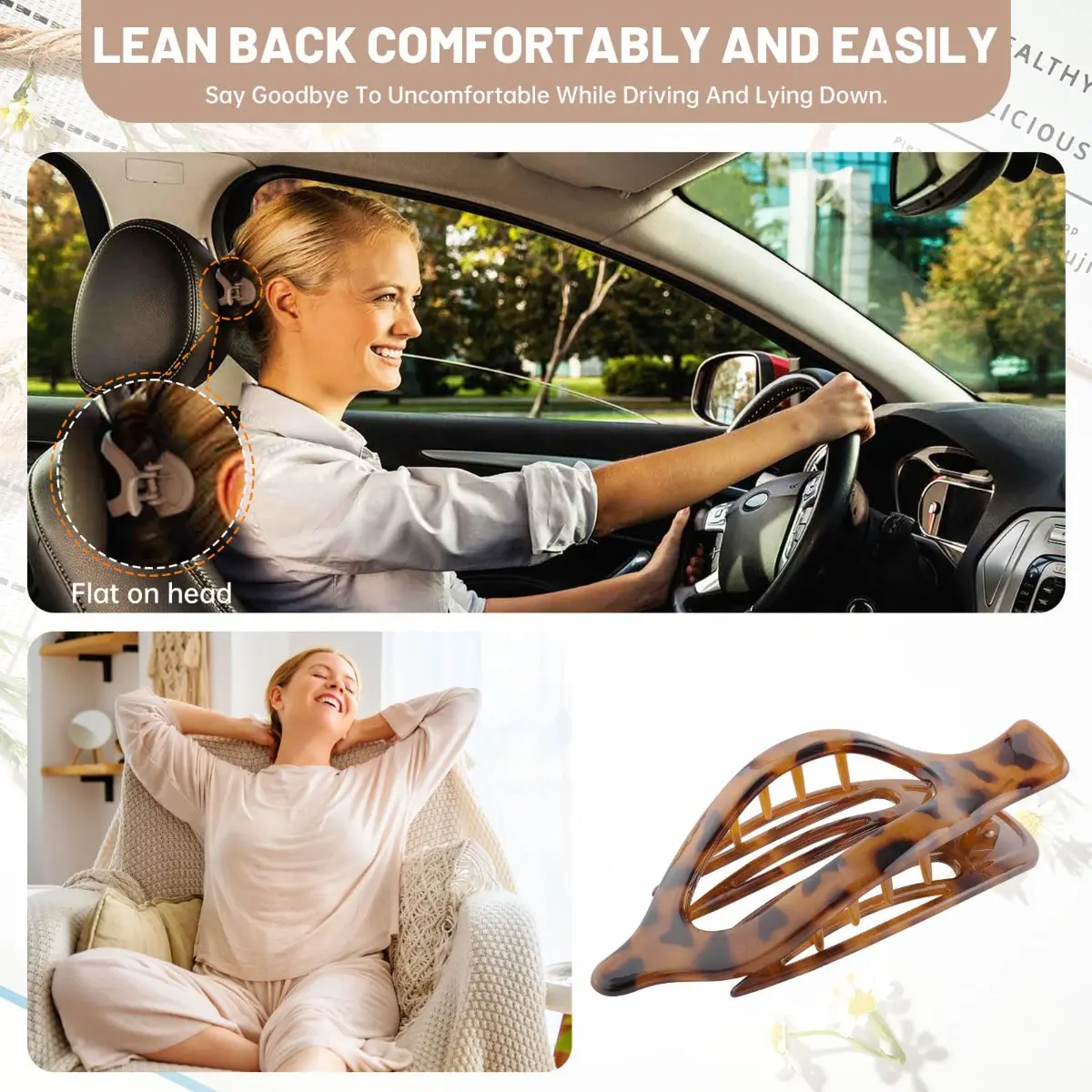 【All-Day Comfort, Elegant at Will】 - The hair clip's flat design conforms to the shape of your head, ensuring comfort throughout the day, whether you're driving, relaxing on a beach chair, or leaning on the sofa