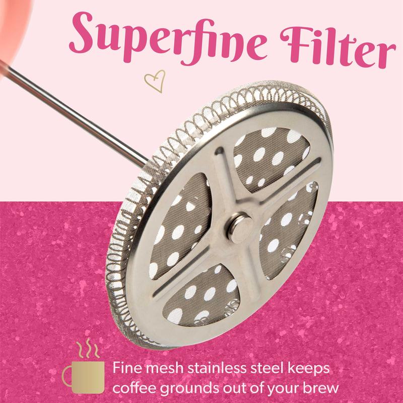 Brew up to 8 demitasse cups of fresh, pressed coffee with style and make your morning iconic with Paris Hilton's French Press Coffee Maker. Whether you're at home, on a glamping trip, or at a festival, this press is a must-have for any coffee or tea lover.