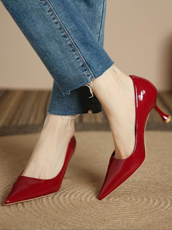 5. French Style Pointed Toe Stiletto High Heels, Sexy PU Leather Shoes for Women, Soft Sole Commuter Wedding Single Shoes