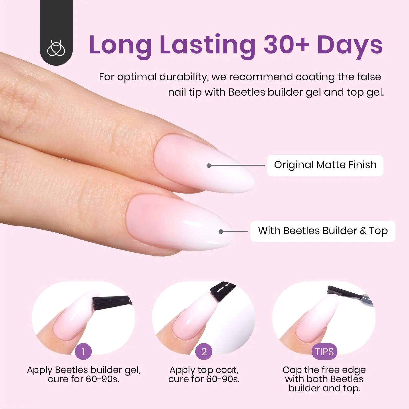 4. Beetles French Tip Press-On Nails – Pink, Nude & Brown Ombre French Tips, 4-in-1 False Nail Tips in 15 Sizes for Easy DIY Manicure, No Filing Needed, Reusable & Durable for Salon-Quality Nails