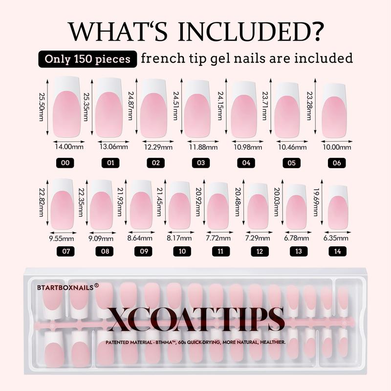 ·HEALTHY MATERIAL WITH SGS/MSDS STANDARDS: This French tip press on nails kit are in strict production compliance with SGS & MSDS standards. Natural resin, healthy ingredients, no impurities, vegan & cruelty-free, non-toxic and harmless to nail & skin.