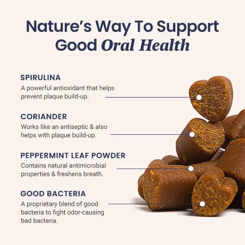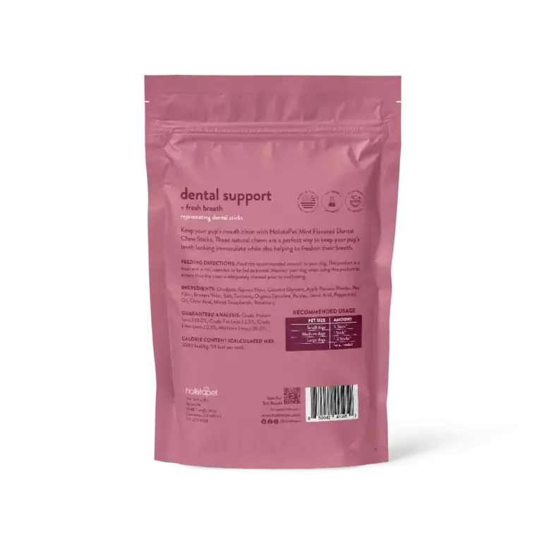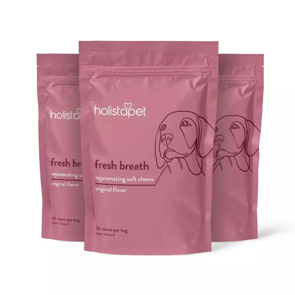 Introducing HolistaPet Fresh Breath Soft Chews – an easy and effective solution to combat bad breath in dogs. These specially formulated chews are packed with natural ingredients like spirulina, coriander, kelp, parsley, and peppermint leaf powder, along with 300 million CFU of beneficial bacteria to help eliminate the bacteria responsible for bad breath. Daily use helps reduce plaque and tartar buildup, supporting healthier gums and teeth while freshening your dog’s breath. Not only will your pup enjoy the delicious taste of these soft chews, but they’ll also benefit from better oral hygiene, a cleaner mouth, and improved overall dental health. Regular use can help your furry friend feel more confident with a fresh, happy smile, making it a perfect addition to your dog’s daily wellness routine. Say goodbye to pungent breath and hello to a more confident canine companion with HolistaPet Fresh Breath Soft Chews!