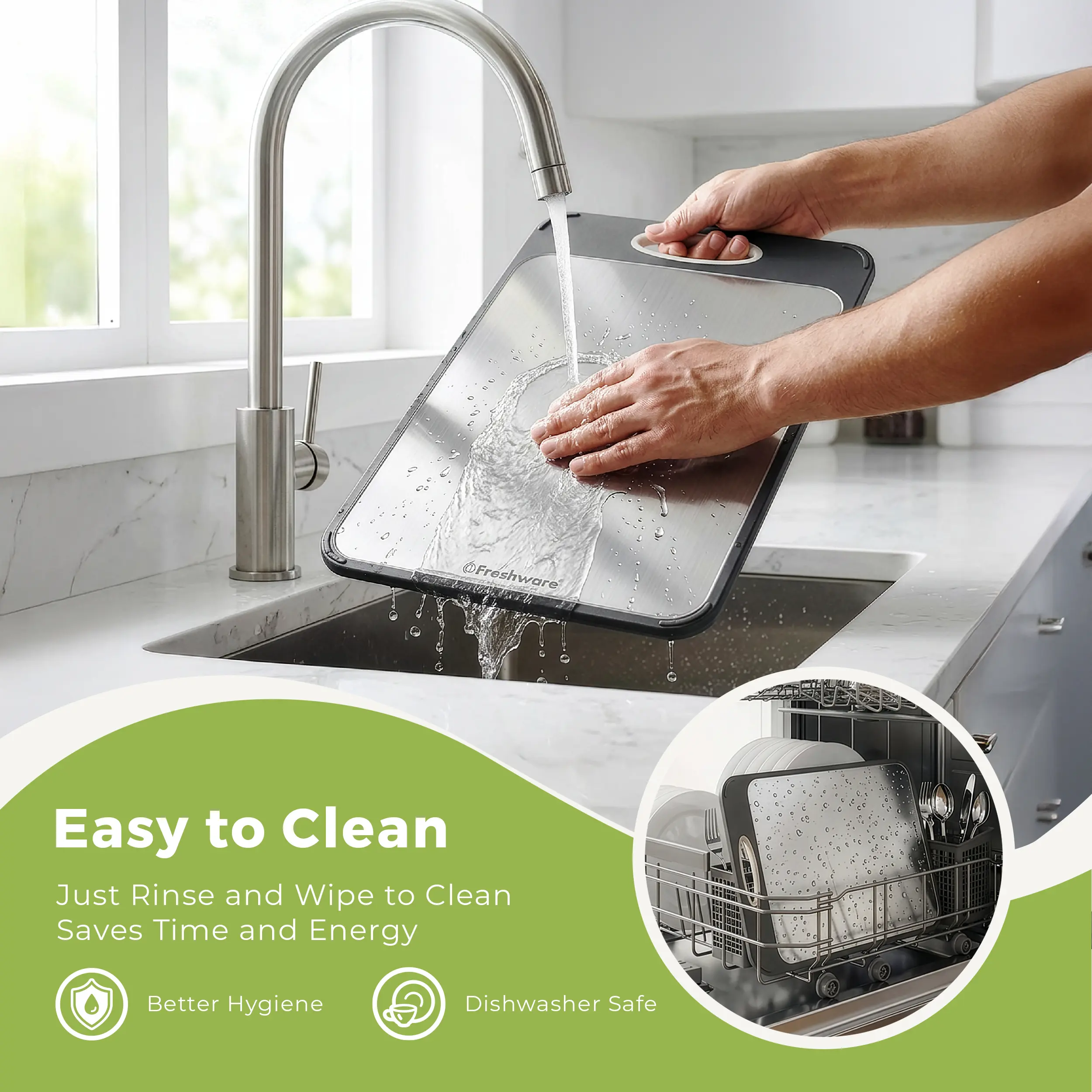 Easier to handle than heavy metal boards. Seamless surface resists deep grooves, stains, and trapped odors for cleaner prep.
