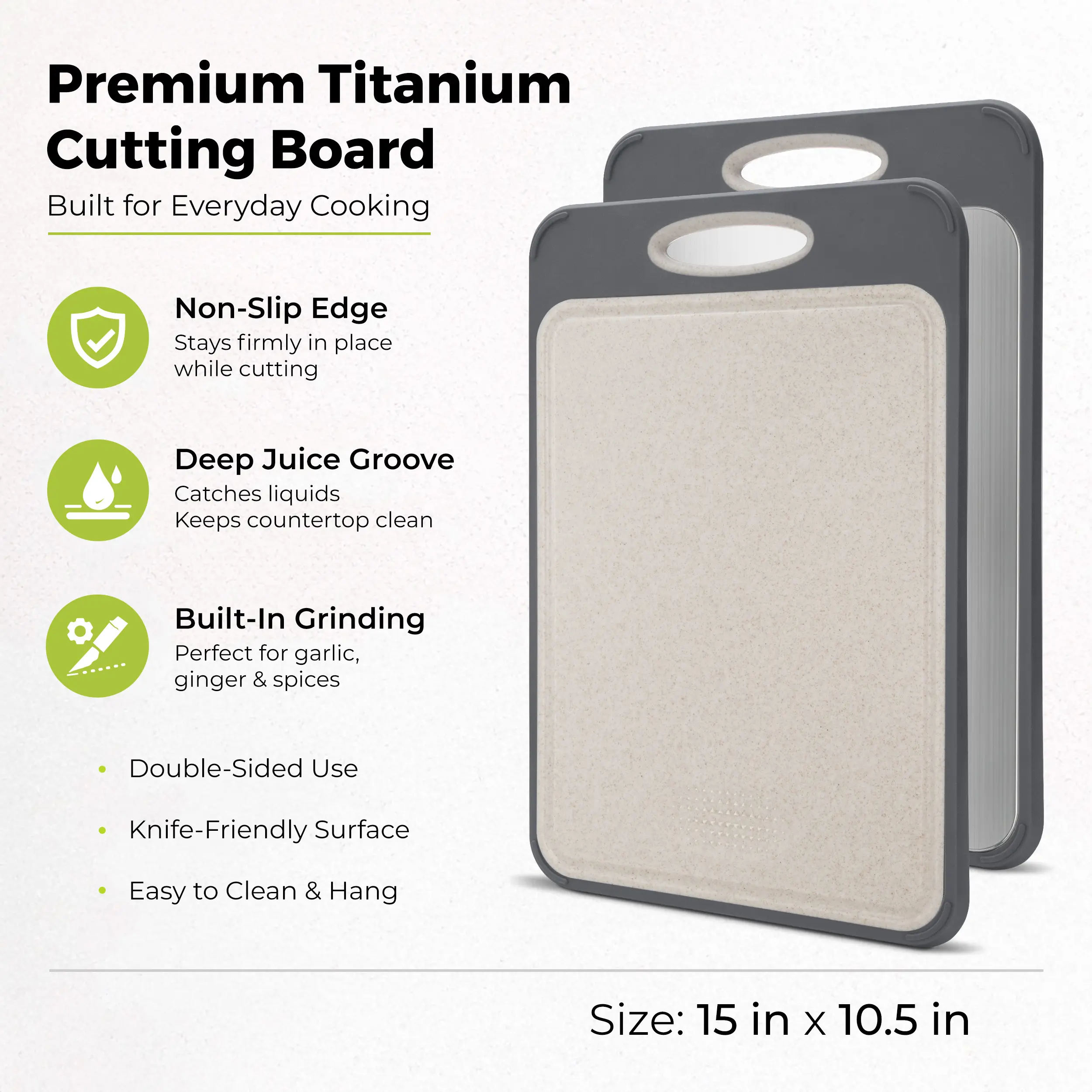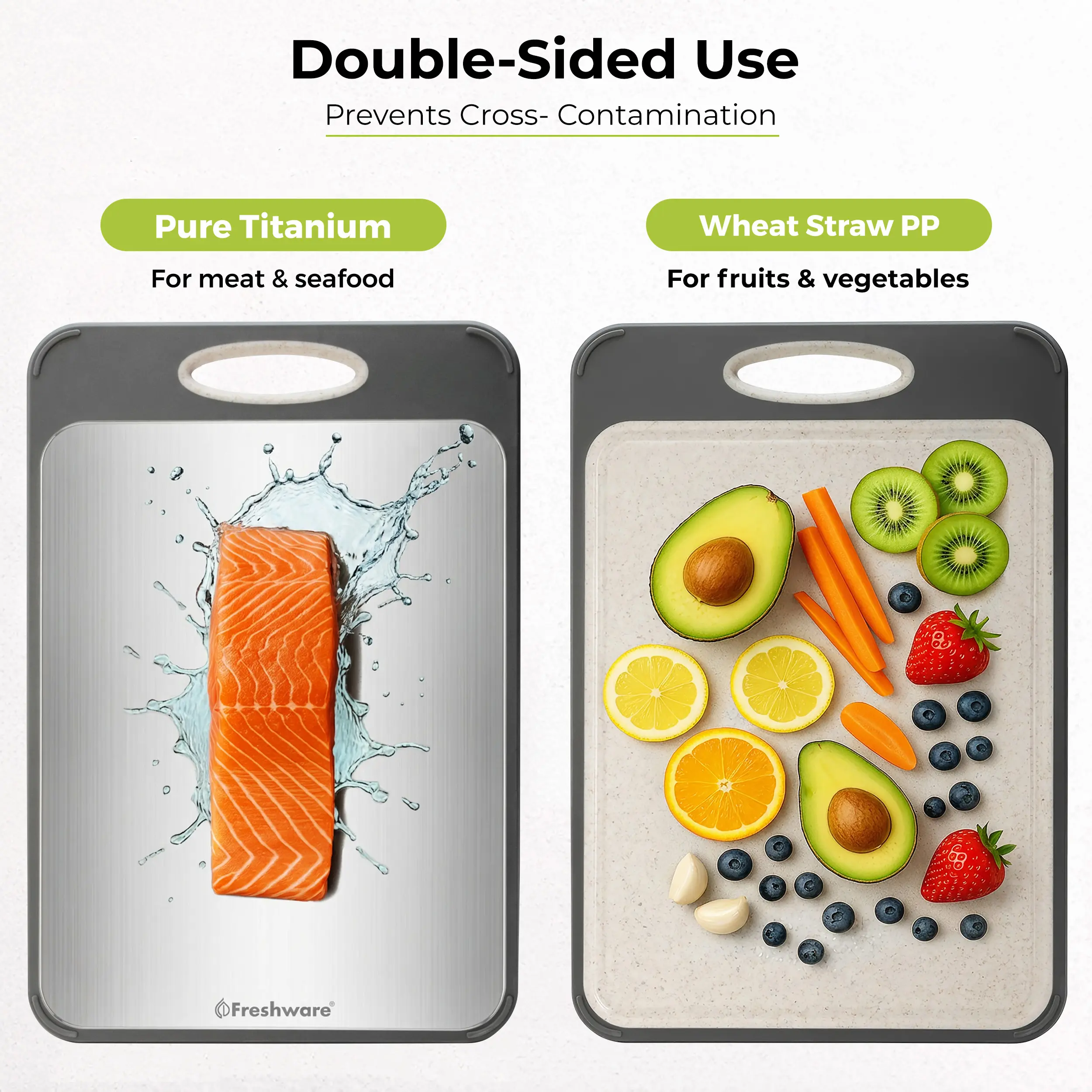 Cut meats and fish on the pure titanium side, and prep fruits and veggies on the food-grade PP side—designed to keep flavors separate and prep organized.