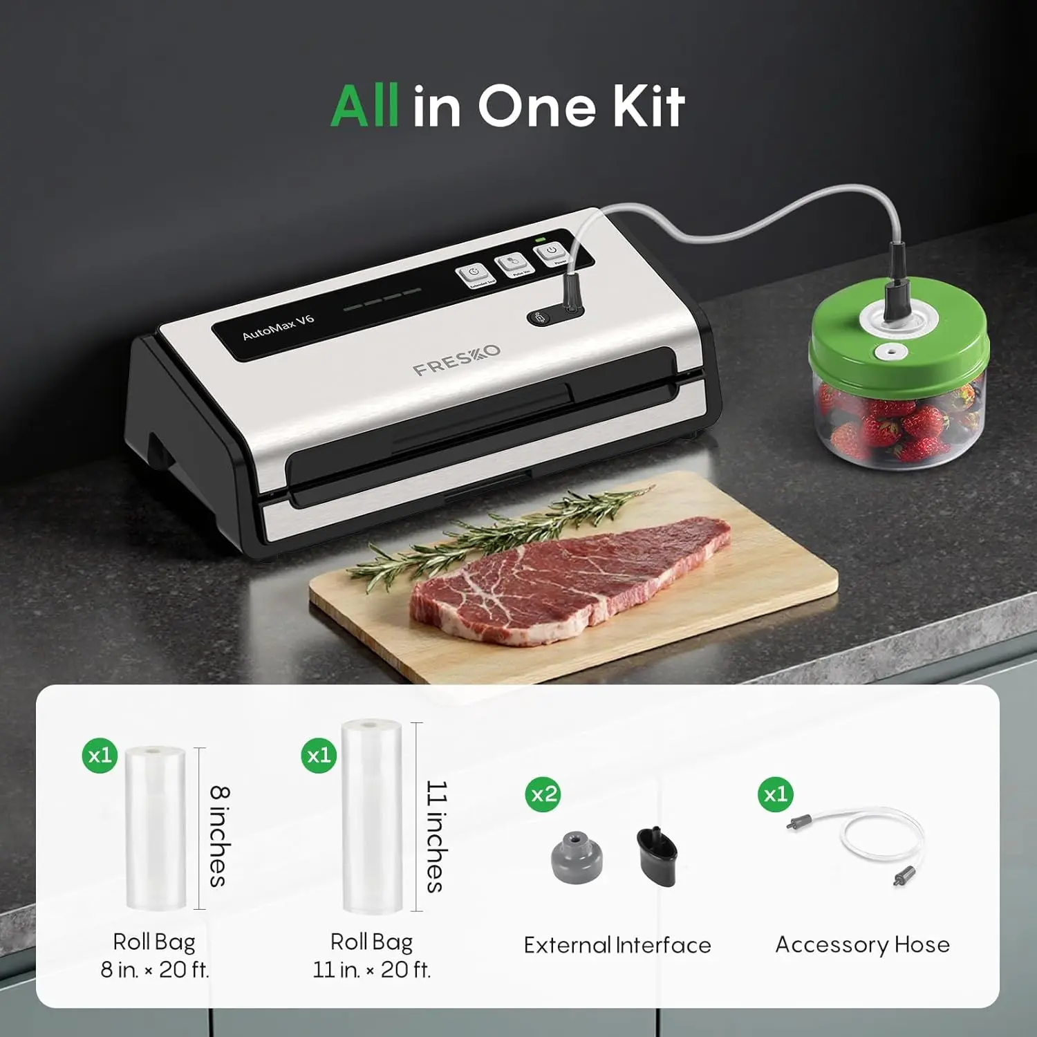 Holds vacuum bags up to 11" for custom sealing.
