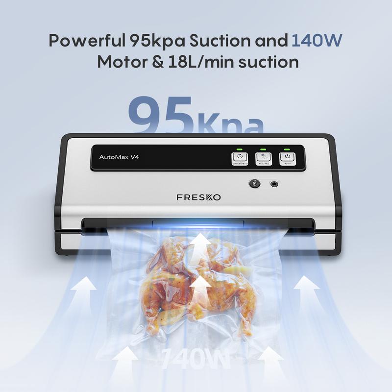 Seal up to 30 bags in 15 minutes! With a 95kpa suction and 140W motor, our machine rapidly removes air for a tight, secure seal, perfect for bulk meal prepping and saving time.