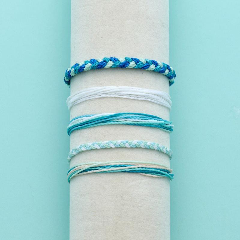Save 35% on bracelets by purchasing our Blue Bay Friendship 5 Pack ($46 value), featuring 5 of our top selling original and braided bracelets! Wear them all together, mix and match your favorite combinations or share with a friend. Every bracelet is unique and hand-made therefore a slight variation in color combination may occur. Waterproof Go surf, snowboard, or even take a shower with them on.