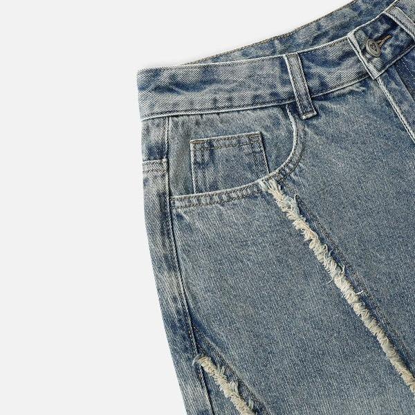 Step out of the ordinary with these Aelfric Eden Fringe Baggy Jeans! With a baggy and comfortable fit, plus a simple and stylish frayed patchwork design, these jeans are perfect for any occasion. The vintage wash adds a touch of coolness to your look. Don't sacrifice style for comfort, get the best of both worlds with these jeans.