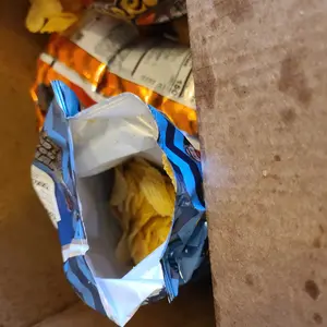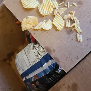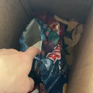You know bubble wrap probably would’ve fixed this, but it was sent out without any in the package 😑 Received my package and a bag of my chips were open already and chips in the bottom of the box😡😡😡😡