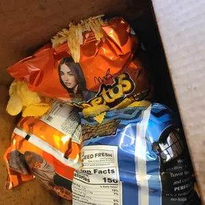 Absolutely terrible packaging! Bag popped open and chips everywhere no protection for the chip bags at all.