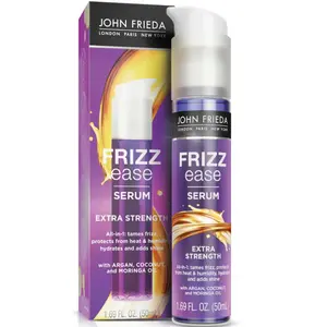 John Frieda Frizz Ease The Controller Extra Strength Serum tackles all levels of frizz while protecting hair from heat and humidity. This lightweight yet powerful smoothing serum delivers up to 72-hour frizz protection, resists 90% humidity, and provides heat protection up to 220°C.