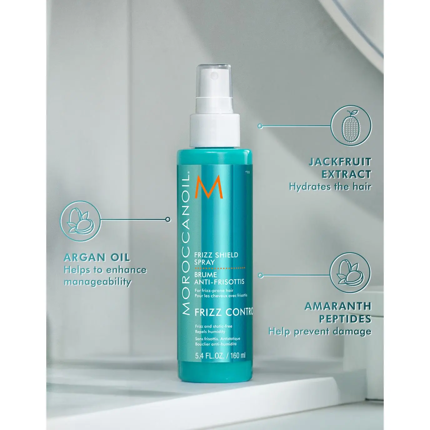 A weightless styling mist that repels humidity to provide long-lasting frizz protection, leaving hair with glass-like shine and a silky, non-sticky finish.