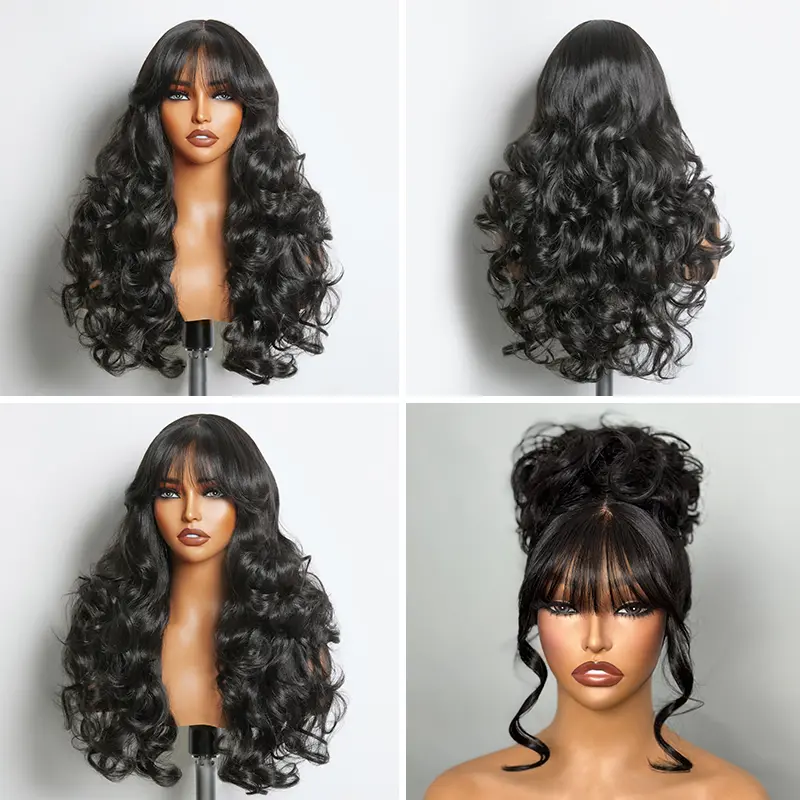 【Blend】 LIVE Frodio Veralux™ Blend Human Hair Glueless Wavy Wig with Bangs Curtain Bang Wig with Realistic Scalp TikTokShopBlackFriday