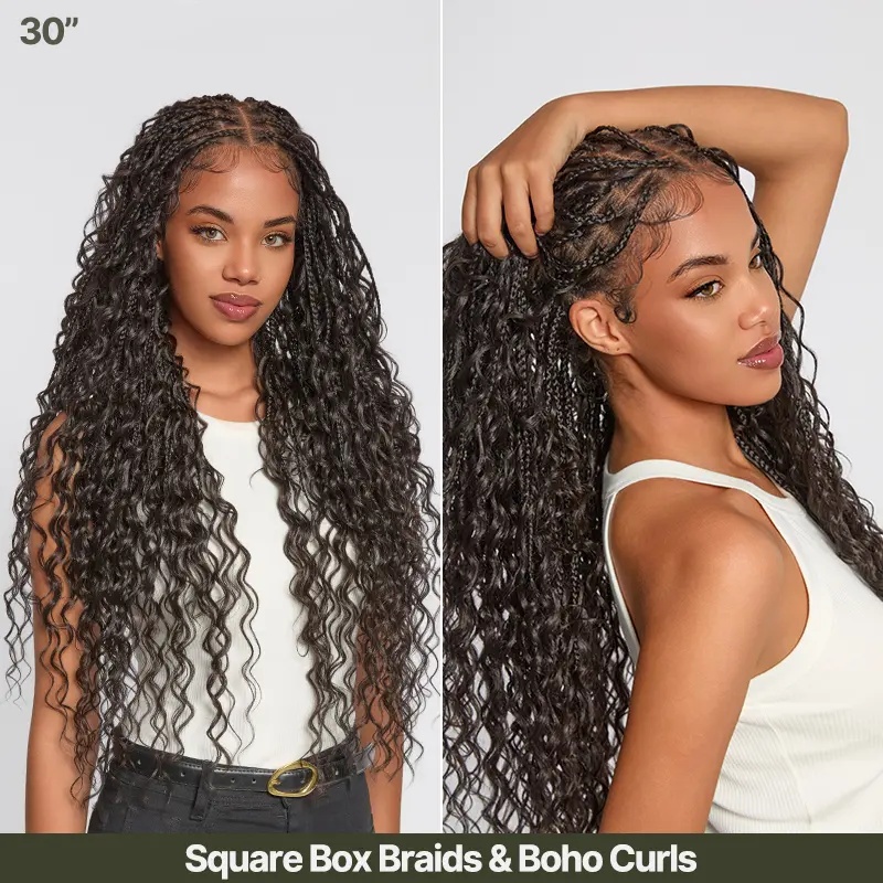 Natural Black, 30“ Square Box Top & Boho Curls