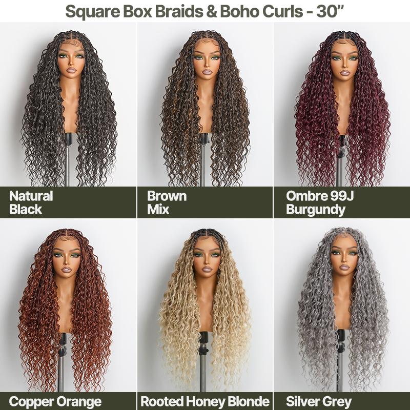 1B Brown Mix, 30“ Square Box Top & Boho Curls