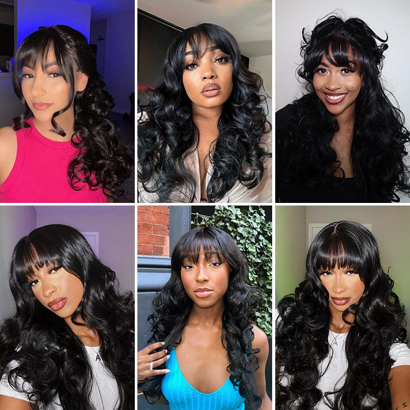 5. [Special Deal][Blend] Frodio Veralux™ Blend Human Hair Glueless Pre-Cut Lace Wig Straight Layered Cut/Wavy Wig with Bangs Curtain Bang Wig with Realistic Scalp Valentine's Day