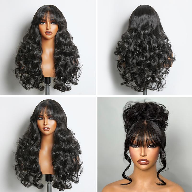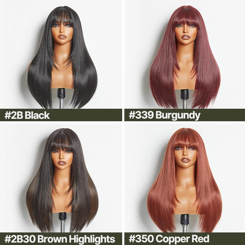 [Special Deal][Blend] Frodio Veralux™ Blend Human Hair Glueless Pre-Cut Lace Wig Straight Layered Cut/Wavy Wig with Bangs Curtain Bang Wig with Realistic Scalp Valentine's Day