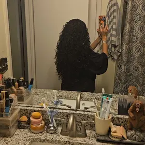 Such beautiful hair !!! Oh my goodness I get compliments everyday and it is so full and beautiful. I recommend only water based and light products on it after a few days. Only comb out the curls if absolutely necessary and make sure it’s wide tooth. It does get frizzy and if you wear rings it pulls