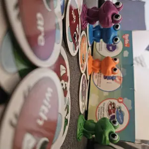 Came as pictured. The cards and frogs are great quality. The words are color coded by grade level which is perfect.