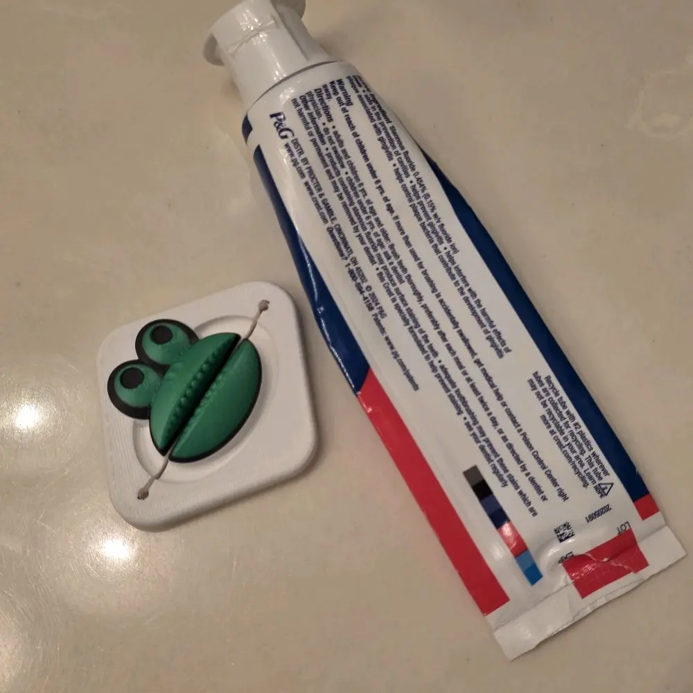 Cute frog toothpaste squeezer for your bathroom. 3d printed. Great to get all the toothpaste out of the tube and brings joy while doing it.