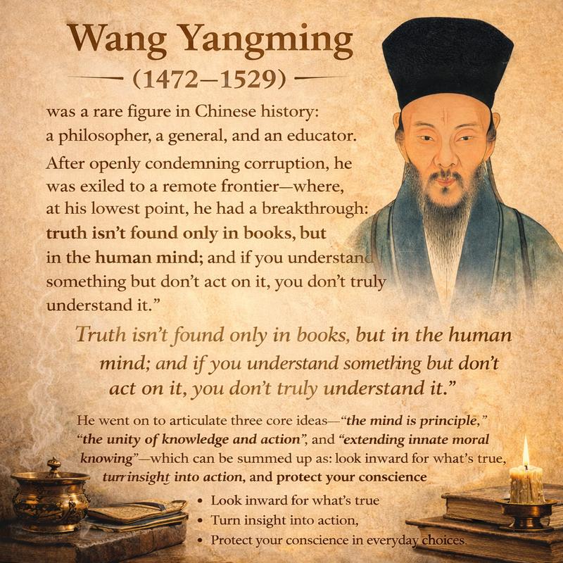 📚 Wang Yangming (1472–1529) was a rare figure in Chinese history: a philosopher, a general, and an educator.