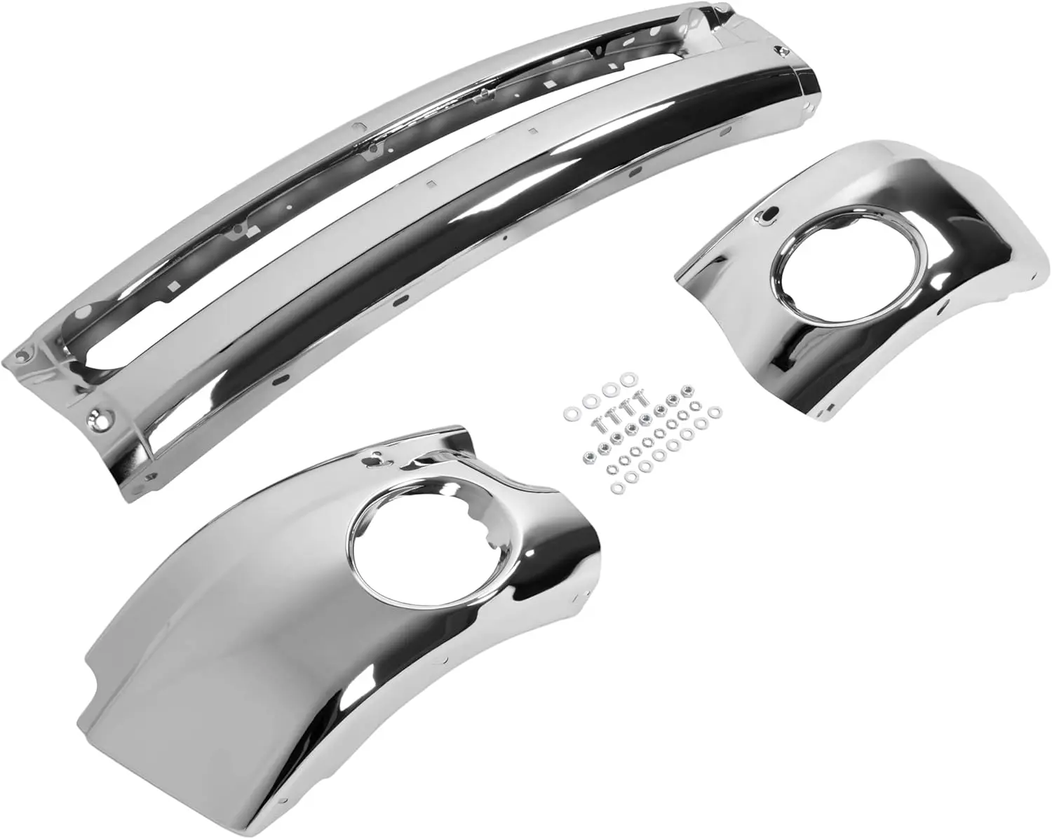 ·1 X Front bumper face bar (Silvery). No hardware and instructions. Direct replacement. If you do not have the experience we recommend that you seek professional assistance to ensure a secure installation