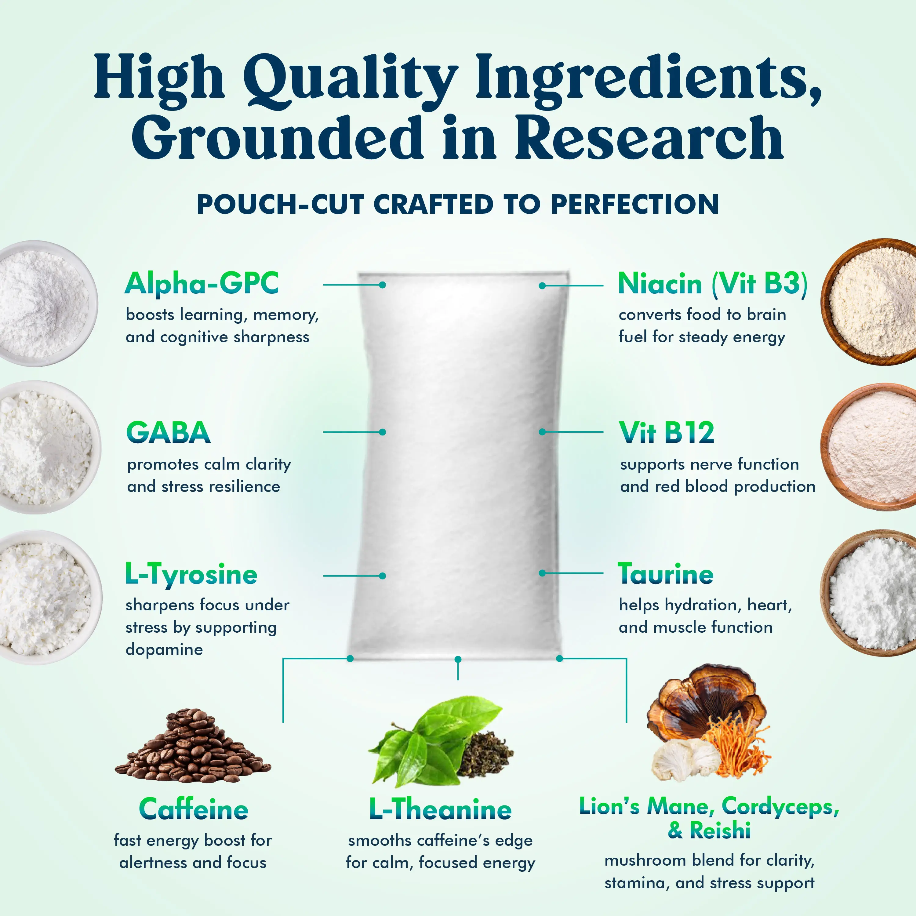 ·Smooth & Steady – Caffeine + nootropic blend designed for sustained alertness without the crash