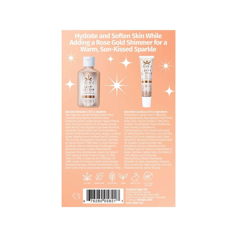 | Ingredients | LOTION Water/Aqua/Eau, Isopropyl Palmitate, Butylene Glycol, Propanediol, Butyrospermum Parkii (Shea) Butter, Dimethicone, Glycerin, Sorbitan Stearate, Fragrance (Parfum), Glyceryl Stearate, PEG-100 Stearate, Cannabis Sativa Seed Oil, Prunus Amygdalus Dulcis (Sweet Almond) Oil, Simmondsia Chinensis (Jojoba) Seed Oil, Aloe Barbadensis Leaf Juice, Vanilla Planifolia Fruit Extract, Squalane, Tocopheryl Acetate, Helianthus Annuus (Sunflower) Seed Oil, Panthenol, Citric Acid, Mica, Phenoxyethanol, Cetyl Alcohol, Stearic Acid, Polysorbate 40, Titanium Dioxide (CI 77891), Nylon-12, Calcium Aluminum Borosilicate, Carbomer, Chlorphenesin, Ethylhexylglycerin, Aminomethyl Propanol, Trisodium Ethylenediamine Disuccinate, Silica, Benzyl Benzoate, Linalool, Iron Oxides (CI 77491), Hydroxycitronellal, Limonene, Orange 4 (CI 15510), Yellow 6 (CI 15985), Tin Oxide, Red 40 (CI 16035), Blue 1 (CI 42090), Ascorbic Acid, Potassium Sorbate, Sodium Benzoate LIP Polyisobutene, Caprylic/Capric Triglyceride, Isopropyl Myristate, Butyrospermum Parkii (Shea) Butter, Silica, Titanium Dioxide (CI 77891), Mica, Synthetic Fluorphlogopite, Phenyl Dimethicone, Flavor (Aroma), Octyldodecanol, Polyhydroxystearic Acid, Cannabis Sativa Seed Oil, Vanilla Planifolia Fruit Extract, Cocos Nucifera (Coconut) Oil, Prunus Amygdalus Dulcis (Sweet Almond) Oil, Simmondsia Chinensis (Jojoba) Seed Oil, Squalane, Tocopheryl Acetate, Aloe Barbadensis Leaf Juice, Helianthus Annuus (Sunflower) Seed Oil, Panthenol, Triethylhexyl Trimellitate, Hydroxystearic Acid, Sodium Saccharin, Caprylyl Glycol, Iron Oxides (CI 77491), Ethylhexyl Hydroxystearate, Dibutyl Lauroyl Glutamide, Phenoxyethanol, C30-45 Olefin, Dibutyl Ethylhexanoyl Glutamide, Tin Oxide, Isopentyldiol, Limonene, Citral, Ascorbic Acid, Water/Aqua/Eau, Citric Acid, Potassium Sorbate, Sodium Benzoate |