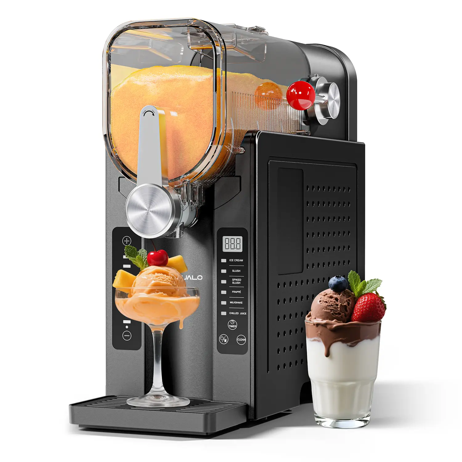 ·6 Preset Programs & LED Display: The TEQUALO Slushie Machine, which offers 6 convenient preset programs: Ice Cream, Slush, Spiked Slush, Chilled Juice, Milkshake, and Frappe. Equipped with LED display allows precise temperature control for customizable drink textures, from thick and creamy to light and refreshing. Perfect for creating drinks like margaritas or milkshakes, it empowers users to craft their ideal frozen beverages effortlessly.