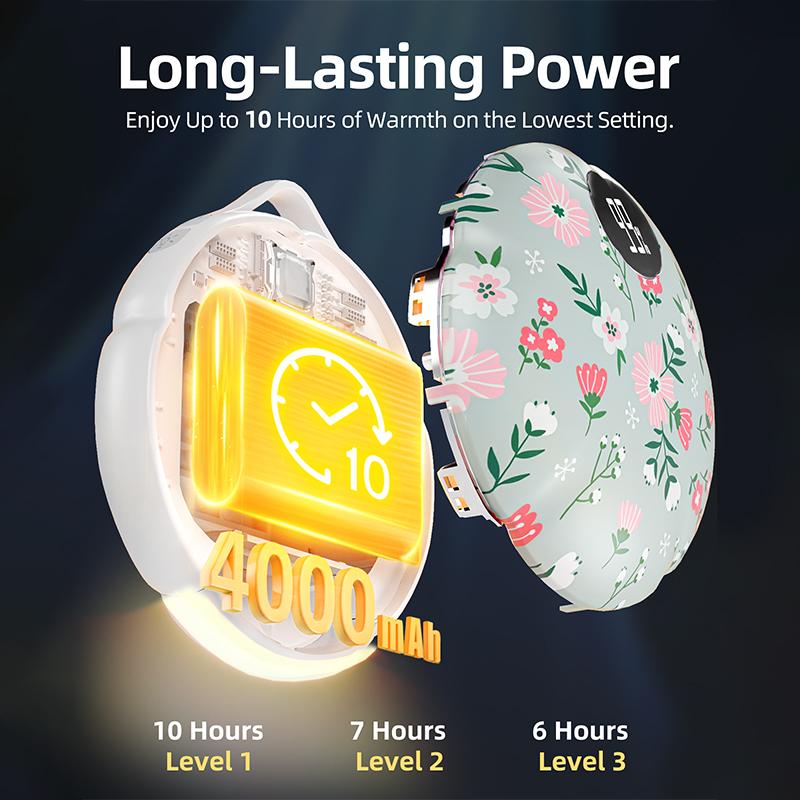 🌟 Dual-Sided 3-Level Adjustable Warmth 🌟- Enjoy three heat settings for soothing warmth on both sides of your hands.- Long-lasting heat, extending up to 10 hours on a single charge.- Perfect for work or outdoor adventures.